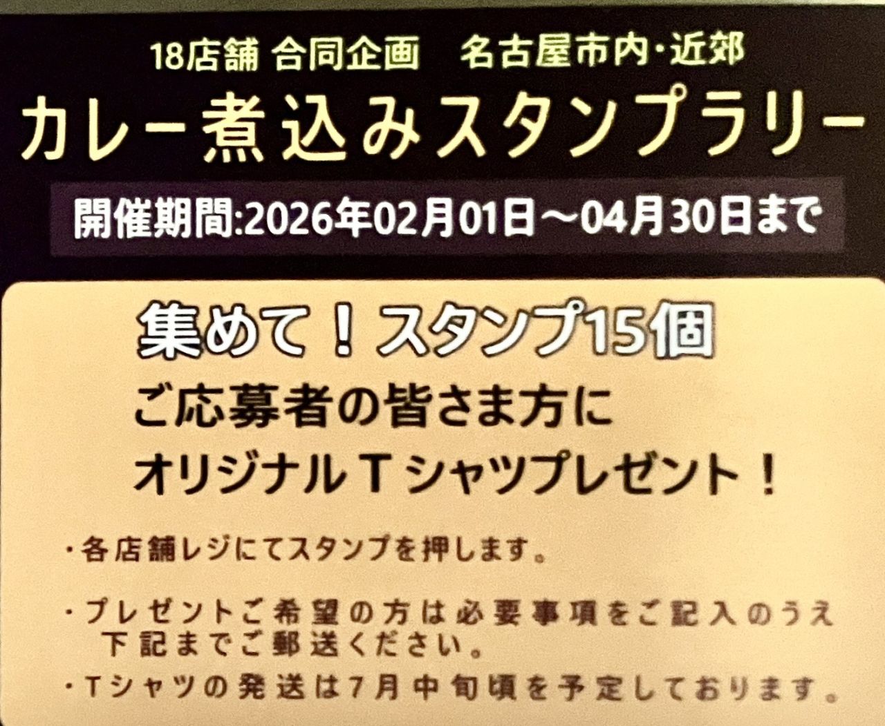 2月からカレー煮込みスタンプラリーに参加します!スタンプラリーの詳細は店舗に置いてある台紙を確認ください!